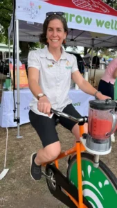 Alexandra District Health (ADH) and Grow Well Dindi (GWD) teamed up for the day, offering dazzling conversation, free smoothies and Diabetes health checks at the Alexandra Show. GWD was a successful recipient of a Quick Response grant through Murrindindi Shire Council’s Grants and Sponsorships Program which funded a fun, healthy and active activity that had members of the community making their own free delicious smoothies, blended by sheer pedal power! During the course of the day, the community pedalled out 126 mango or strawberry smoothies. The bikes proved popular with children and adults alike, with lots of people eager to join in the fun including Sarah Hopkins from Murrindindi Shire Council and Peter Weeks whose dulcet tones you may recognise from the UGFM airwaves. Robyn and Anne Marie, two of our ADH District Nurses conducted over 50 blood pressure checks and blood glucose checks, and shared their expertise and knowledge with many other community members who stopped by for a chat. Lots of resources were distributed out into the community, including many healthy recipe ideas and free drink bottles. As a sponsor of GWD, Goulburn Valley Water donated 50 drink bottles which proved an extremely popular offering.